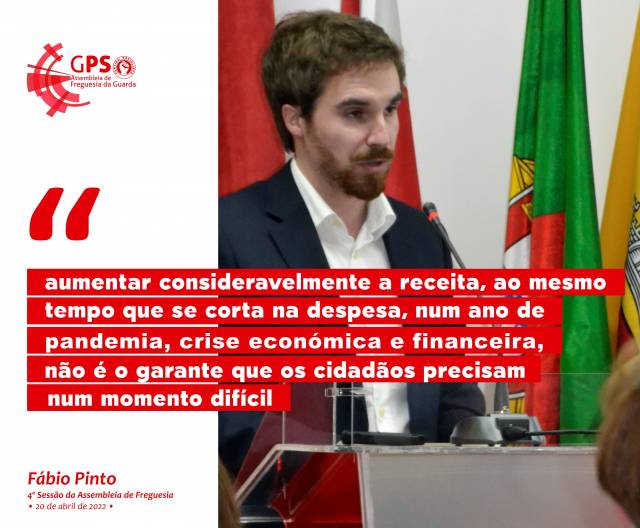 Intervenção realizada na 4ª Sessão da Assembleia de Freguesia da Guarda do mandato autárquico compreendido entre os anos de 2021 e 2025, a 20 de abril de 2022, no período da ordem do dia, nomeadamente no ponto referente à apreciação e votação da Prestação de Contas de 2021, para evidenciar que mais de metade das 11 propostas apresentadas pelo GPS AFG para o Orçamento da Freguesia de 2021 não foram tidas em conta, assinalar que o ano de 2021 valeu menos 13.200 euros em apoios a Associações, quando em comparação com 2020, um ano já de si dificílimo para todos, a passo que também representou menos 6 associações apoiadas, para solicitar um esclarecimento sobre o intuito do valor da despesa associada à avença com “Comunicação e Imagem / Acessória”, no valor de 5.625,00 euros, inquirindo sobre a que se deve esta despesa e se a Junta de Freguesia não reúne recursos humanos e meios suficientes para assegurar a sua comunicação e imagem e para evidenciar que ocorreu um aumento considerável na receita e um corte na despesa, isto num ano de pandemia, de crise económica, sanitária e financeira, destacando que essa preocupação não deve assistir a uma Junta de Freguesia que devia ter o dever de aumentar a abrangência da sua ação para atender, de forma extraordinária, ao apelo das necessidades extraordinárias da sua comunidade.
