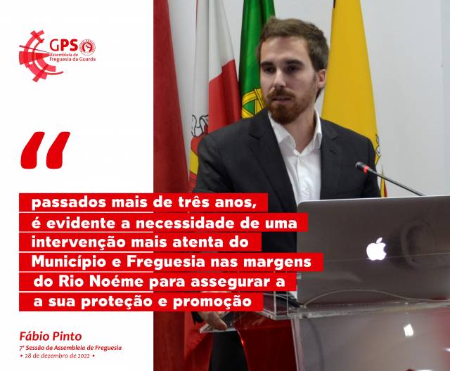 Intervenção realizada na 7ª Sessão da Assembleia de Freguesia da Guarda do mandato autárquico compreendido entre os anos de 2021 e 2025, a 28 de dezembro de 2022, no período antes da ordem do dia, nomeadamente no ponto referente aos assuntos de interesse para a freguesia, para destacar algumas das evidências detetadas com a caminhada promovida ao longo dos trilhos do Rio Noéme, no âmbito da 4ª edição das Jornadas de Proximidade do Grupo, realizadas no passado mês de outubro.