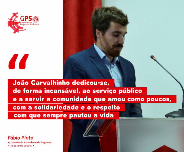 Intervenção realizada na 17.ª Sessão da Assembleia de Freguesia da Guarda do mandato autárquico compreendido entre os anos de 2021 e 2025, a 30 de junho de 2025, no período de antes da ordem do dia, nomeadamente no ponto referente aos assuntos de interesse para a Freguesia, para apresentar uma proposta de voto de pesar pelo falecimento de João Saraiva Neto Carvalhinho.